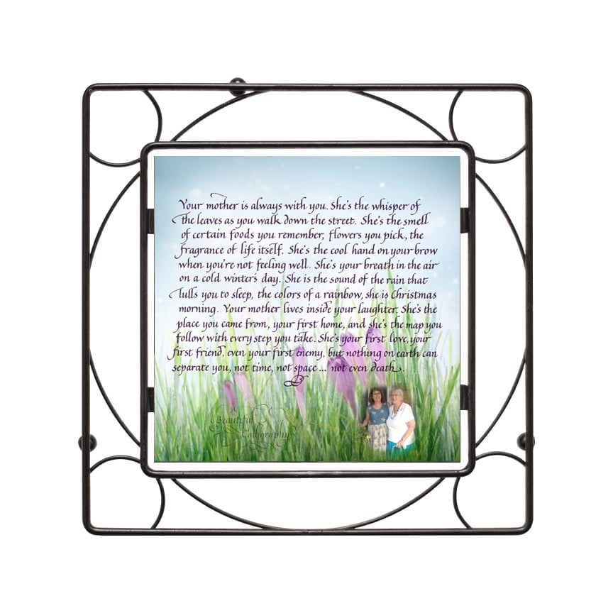 You can choose from a nice variety of backgrounds so it fits with your mother’s style. And there are many ways to print/frame if you’d prefer to have a larger piece to hang on the wall.