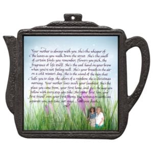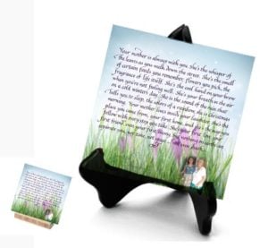 So maybe a trivet isn’t the perfect gift for your mother. Maybe she would love to take your poem to work and put it on her desk. That can be done by printing on metal or on a wrapped surface and having a really nice stand for the piece.