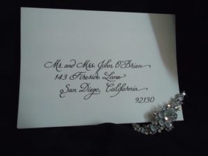 I feel bad putting down another person's work, but really I feel it is my duty to educate you! You should NOT pay good money to have your envelopes addressed by someone using a felt tip pen, or a cartridge pen! You don't get professional results with either of those tools! Ask the calligrapher if they use a "Dip Pen". If they say no, find another calligrapher!
